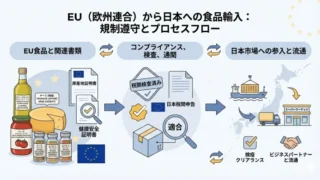 ケース別・商品別の注意点EUから食品を輸入する場合の注意点|実務で止まりやすいポイントと判断基準 EUから食品を輸入する際の実務判断を解説。添加物・ラベル・証明書など、日本の食品衛生法との違いを整理し、通関リスクを回避するポイントを紹介。 2026.01.18ケース別・商品別の注意点海外事業者向け | 日本の食品輸入