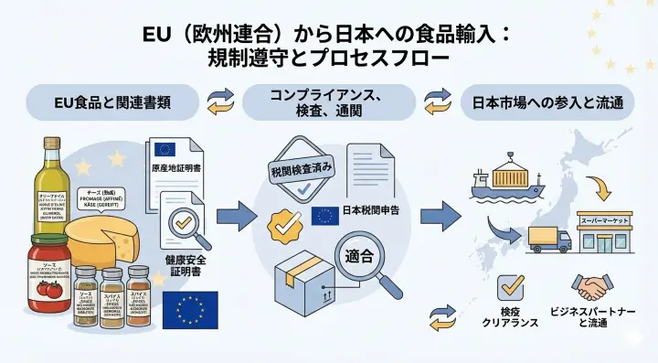 EUから食品を輸入する場合、最大の判断軸は「原産地証明・ラベル表示の適合性」と「添加物・農薬基準の遵守」です。