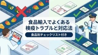 食品輸入で起こりやすい検疫トラブルを徹底解説。生鮮食品・加工食品・動物由来食品別に事例と対応策を紹介し、チェックリストで通関遅延や差止めリスクを回避。