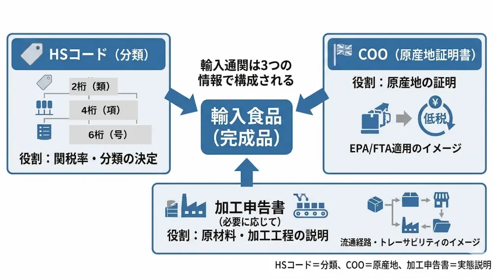 単なる商品説明ではなく、通関・検疫・原産地判断の裏付け資料として使用されます。